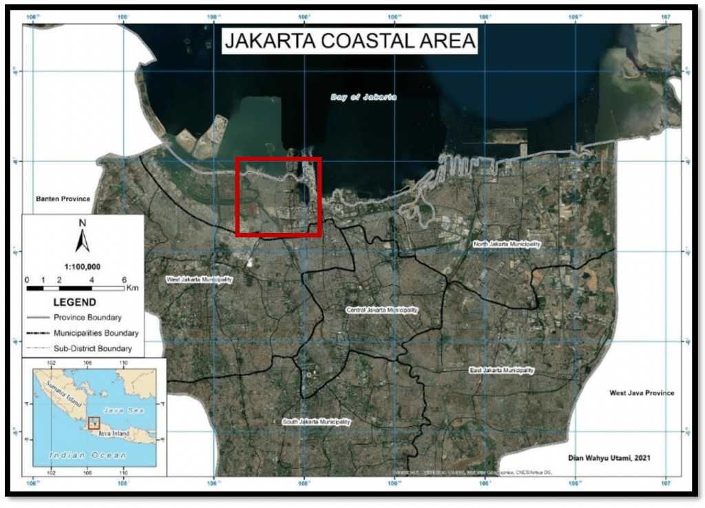 The fishing village of Muara Angke, located in the Penjaringan Subdistrict, is located around the Muara Angke port, with residents working in the fisheries sector, including fish finders, fish dryers, fish trading, and cleaning shellfish. The Processing Center for Traditional Fisheries Items (PHPT) also produces salted fish, shrimp paste, and smoked products. The coastal area of Jakarta is the focus of study in this paper, which is one of the focuses of urban development in Jakarta. Coastal areas in Jakarta have experienced massive development, especially in terms of housing and housing. During 2000-2020, there have been more than 1185 hectares of land reclamation, housing development, and port development. The coastal city of Jakarta, especially Muara Angke, is the center of the fishing industry and fishermen on the islands of Java and Bali. The government has built various kinds of supporting facilities for the fishing industry, such as fishermen’s housing, fish freezing centers, fish buying and selling centers, and fish markets. In addition, to realize a developed and sustainable coastal city of Jakarta, the Indonesian government has also built various facilities such as port construction, construction on reclamation islands, and construction of flats for fishermen.
